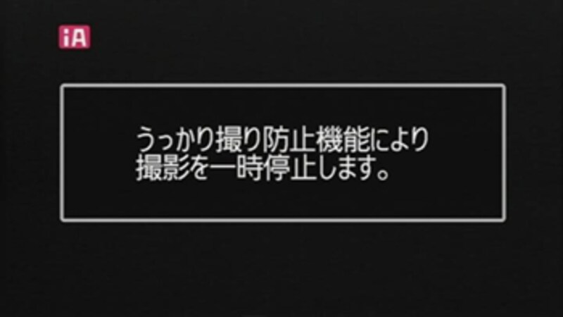 | ▲うっかり撮り防止機能が働き、撮影を一時停止。 |