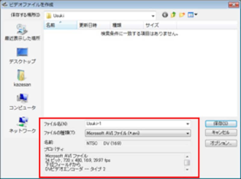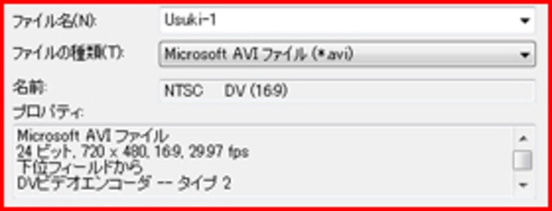 | ▲DV形式での出力を選択する。アスペクト比は16:9を選ぶ。 |