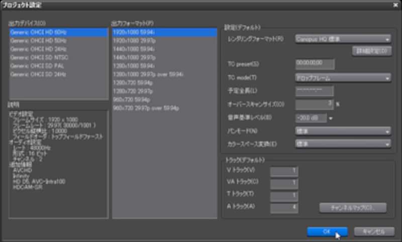 | ▲フルハイビジョンでの出力を前提にしたプロジェクト設定。 (画面クリック) |