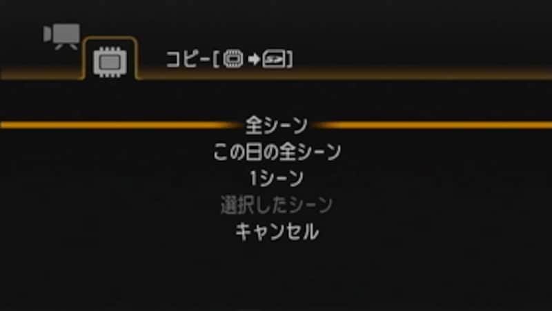 もう1つ、ダブルメモリーだからこそ便利なのが、SDメモリーへのダビングです。32GBの内部メモリーがいっぱいになったら、SDメモリーに記録すればよいのですが、パソコンなどを持たずに外出している場合、内部メモリーの映像を複数のSDメモリーにダビングして保管するという方法もあります。とくに、旅行などの場合、映像のバックアップ処理には最適ですね。