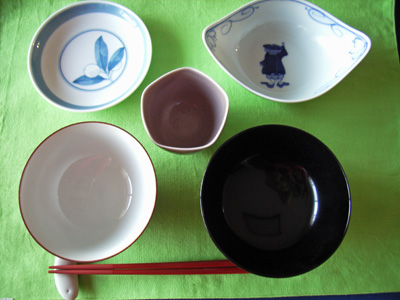 飯碗、汁椀、箸、丸中鉢、角小鉢、丸小鉢