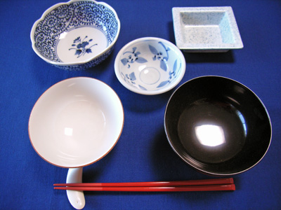 飯碗、汁椀、箸、角中皿、楕円小鉢、角小皿