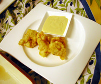 塩漬けタラに衣をつけて揚げ、ガーリックソースを添えます。ガーリックソースは、固くなったパンを水に浸した後、水気を切って、ミキサーにかけクリーム状にしたものに、細かく切ったにんにく、卵黄、酢、塩、オリーブオイルなどを混ぜ合わせます。衣は卵、小麦粉、水などを合わせて作るので、フリッターかと思いましたが、フリッターとは違うようです。味が強くてボリュームのある出来上がりを想像していましたが、ふわっと、驚くほど軽く揚がっていて意外でした。ガーリックソースも、大量のにんにくを使っている割にマイルドな味で、初めての食感でした。