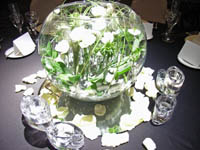 | 丸いガラスの花器がセッティングされたゲストテーブル *画面をクリックすると拡大画面が見られます。 |