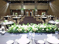| ボールルームのメインテーブルから見た会場全体のコーディネート *画面をクリックすると拡大画面が見られます。 |