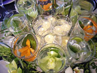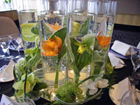 | ゲストテーブルのセンターを飾る涼しげなフラワーアレンジです。*画面をクリックすると拡大画面が見られます。 |