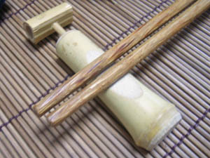 素地に漆をすりこみ木肌を生かして仕上げた木箸が、竹の箸置きや竹のテーブルマットにぴったりです。