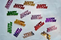 HAPPY BIRTHDAYの字の形のアメリカ製雑貨です。花吹雪のようにテーブルの上にランダムに置いて楽しみます。