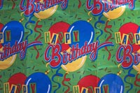 緑の地に、赤と青、黄色のカラフルなカラーの風船と、HAPPY BIRTHDAYの字が印刷された紙のクロスを使います。