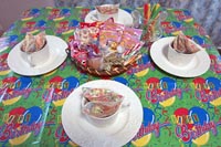 カラフルな色のクロスを敷き、テーブルの上に子供たちの目を引くような小物を置いたり、かわいい絵柄のナプキンを選びましょう。ご招待するお友だちのことを話しながら、親子一緒にコーディネートしてみましょう。きっと自分たち親子ならではのオリジナルのアイデアが浮かんでくることでしょう。![]() |