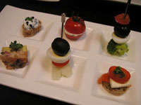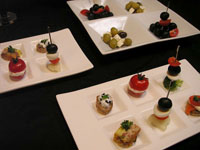 ・カリフラワーとうずらの卵、黒オリーブ、プチトマトのピンチョス