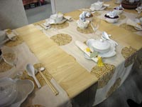 | 「ホワイトパルメッテとブルー パルメッテ」の中国料理のセッティング。 画面をクリックすると拡大画面が見られます。 |