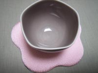 小鉢の下には桜の花の形に桜色のちりめんでつくったマットを敷いて演出。