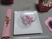 今晩の桜づくしの献立では、桜の花や葉の塩付けを味付けの調味料に使い、料理やピンクのナプキンに、生の桜の花を添えてみましょう。料理や飲み物に金箔をちりばめれば、より豪華な雰囲気がかもし出せます。