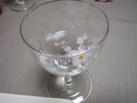 日本酒をいただくグラスにも、桜の花のびらを散らします。