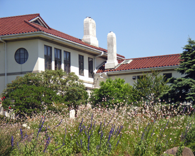 この洋館は、昭和12年に英国総領事公邸として建てられたました。イギリス人は、庭をことのほか大切にします。庭があたかも客間の一部であるかのように、自慢の庭をお見せしてもてなします。剪定をかねてよく咲いた庭の花を切りとり、お部屋や食卓に飾り、庭と室内を一体化させているかのようです