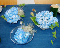 | 食卓の中心にあじさいの花を飾ります。画面をクリックすると拡大画面が見られます。 |