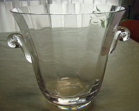 涼やかにみせるために透明のガラス製のワインクーラーを使います。ワインクーラーは、テーブルに置いても違和感がありません。また、口径が広いので、沢山のお花をゆったりと生けることができます。