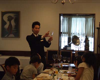 | ソムリエからワイングラスについてのお話を聞きます。 画面をクリックすると拡大画面が見られます。 |