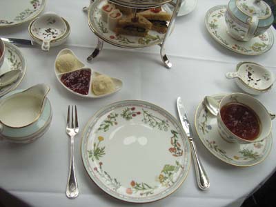 2.ティーポット、ミルクジャグ、シュガーポット、ティーストレーナー(茶漉し)をセッティングします。