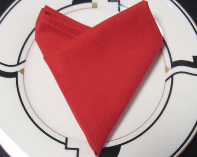 赤いバラに合わせて、赤いナプキンを選び、ハートの形に折ります。