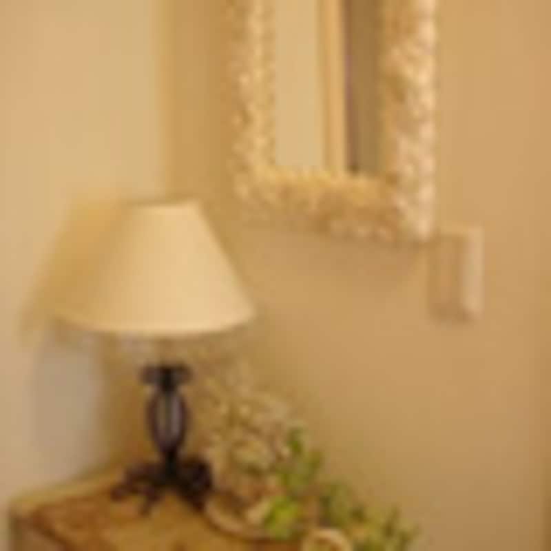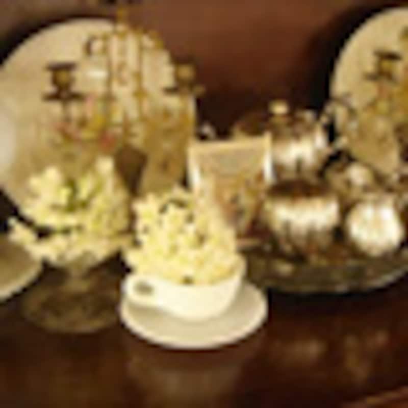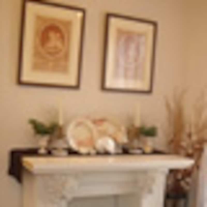 暖炉の焚(た)き口の周辺部分や、暖炉の上部の飾り棚をマントルピースといいます。欧米では、花やキャンドルなどで飾ります。特にハロウィーンやクリスマス、イースターなどには、それぞれの家庭で素敵に飾りつけられます。左右対称に飾る方法が一般的です。今回のお宅では、アンティークのプレート、キャンドルスタンド、グリーンの植物が飾られ、マントルピースの上には、額にはいった版画が飾られています。