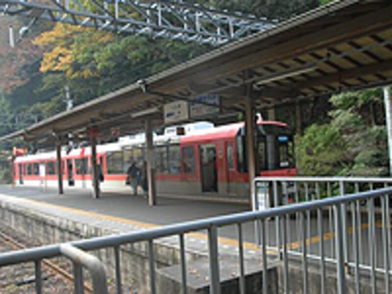 | 鞍馬駅に停車中の観光電車「きらら」。 |