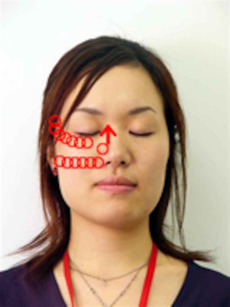 小鼻の穴の横から、耳に向けらせんをかき5回。