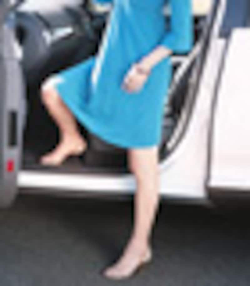 | 爪先から身体の重心を車の外に移動させて降ります。腹筋が抜けていると背筋が曲がり、美しい姿勢に見えませんから、腹筋で上体を引き上げましょう。重心移動がラクにできます。 |