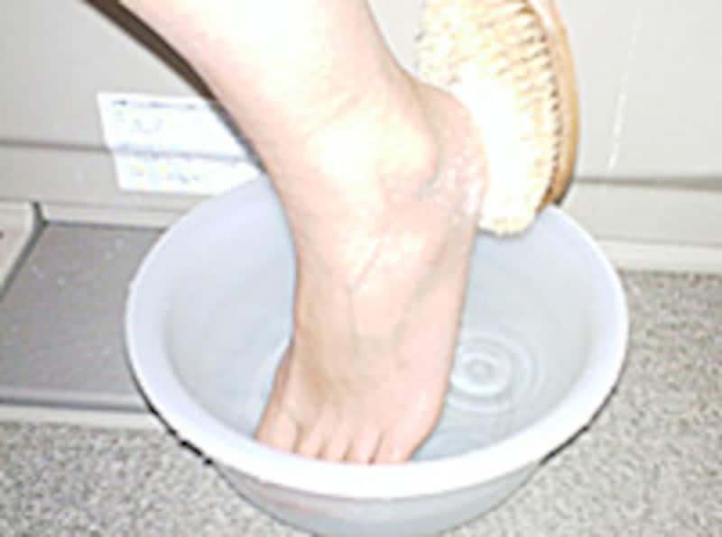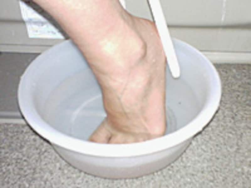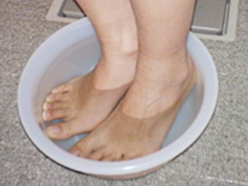 1.お風呂に入る。あるいは、洗面器や大きなバケツなどにお湯をはり、足湯をする。