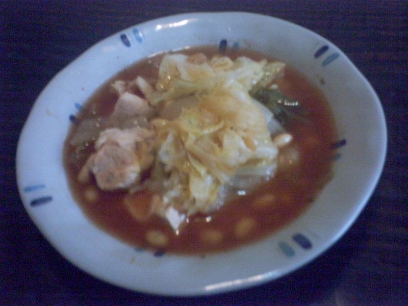 「鶏肉とキャベツと大豆のトマトシチュー」