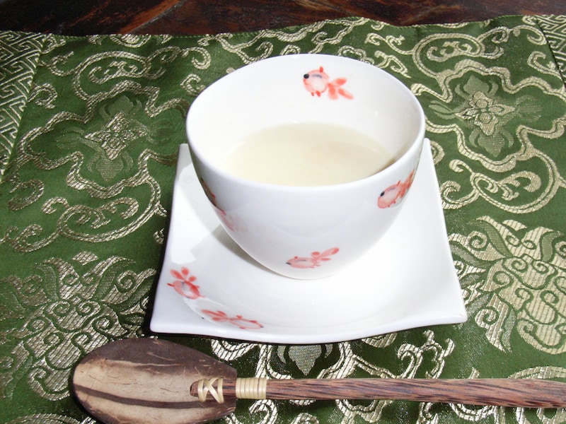 1.豆乳と砂糖(私の場合はカロリーゼロの甘味料を使いました)を鍋で温める。