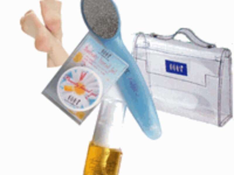| ビューティーフットセット¥3990 エンジェルヒール、ビューティージェル、椿ニーオイルがオリジナルバックにセットされ持ち運びも便利! |