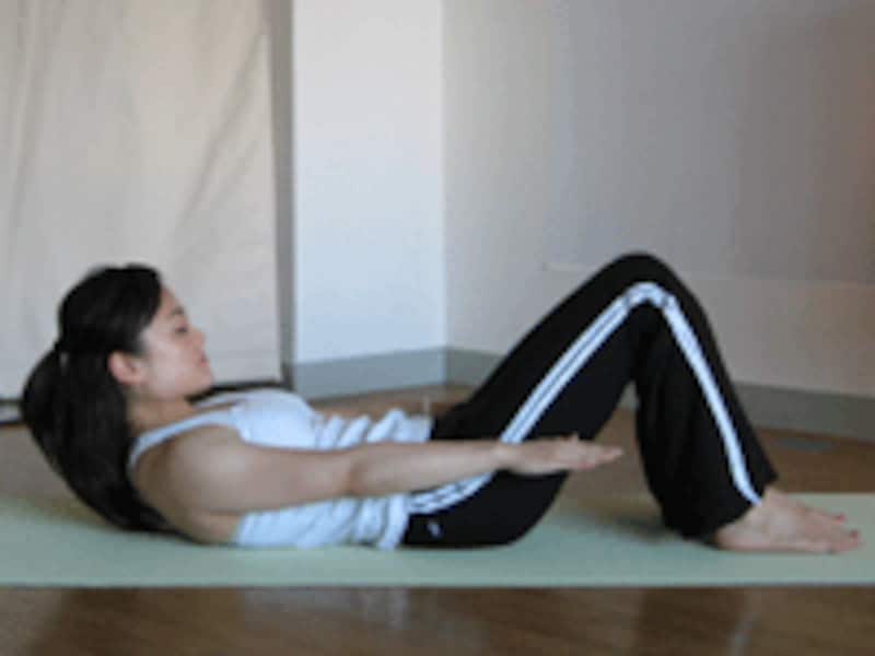 ※1この「インプリント」はいろいろなピラティスエクササイズで登場します。何度も正しいフォームを練習し、内側の筋肉を意識できるようにしていきましょう。