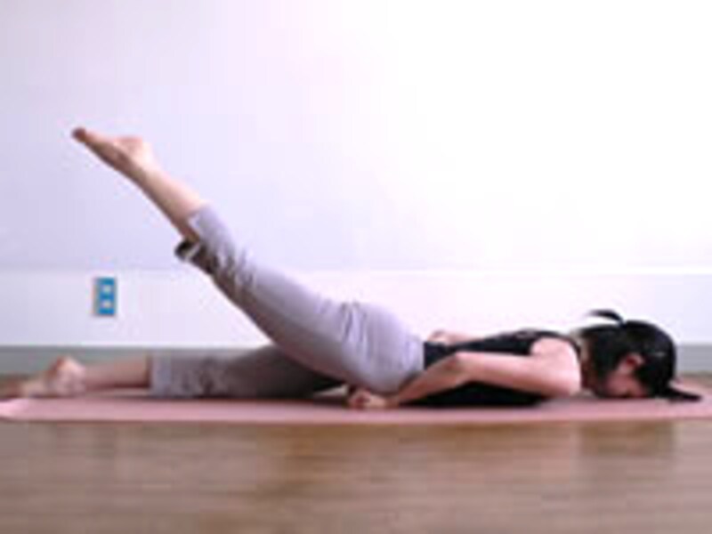 バッタのポーズは、お尻から太ももの、後ろ側の筋肉を使って足をバックに持ち上げるので、ヒップメイクだけじゃなく、太ももの引き締め効果もアリ!最初から高く持ち上げようとせず、呼吸を止めないよう無理のない範囲からはじめてください。