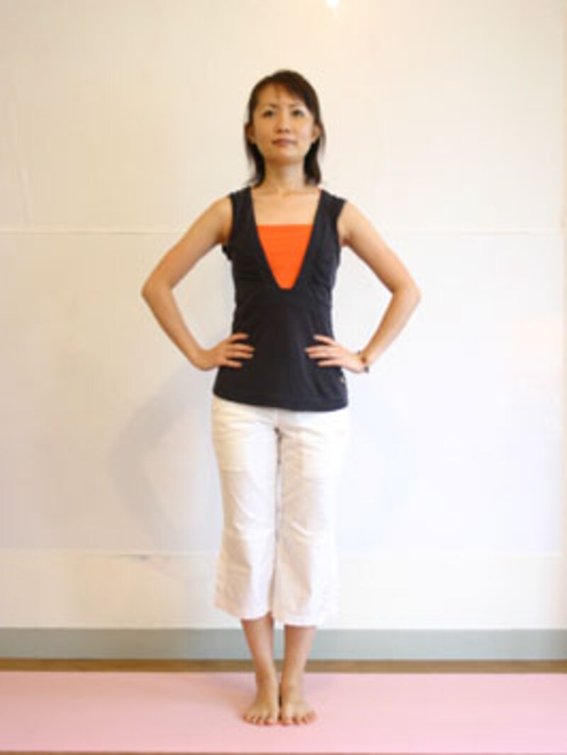 この月のポーズは、下半身に力を入れ、全身を引き伸ばします。エネルギーが満ちてきて、心も体も爽快に!ウエスト引き締めにも効果大のポーズです。