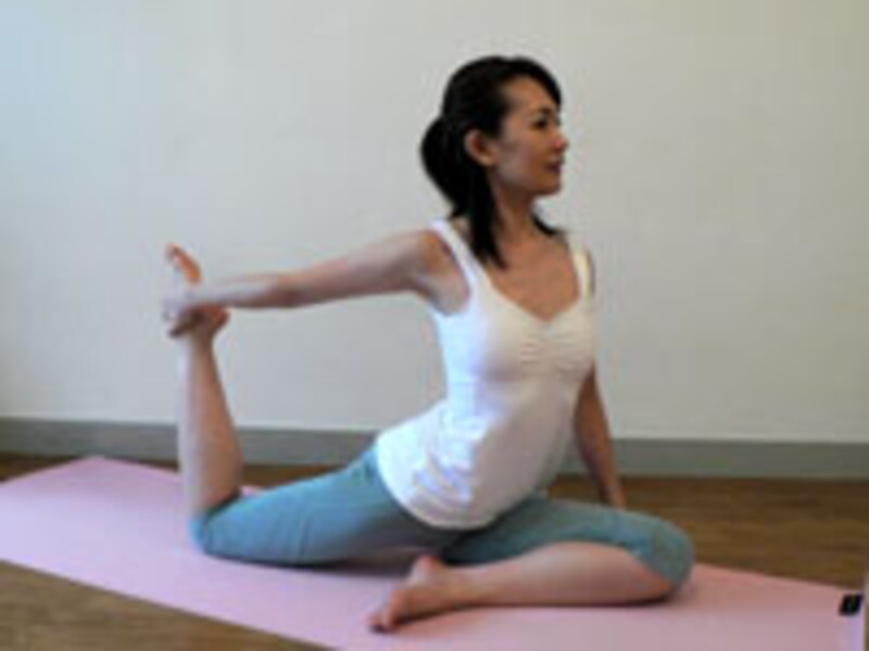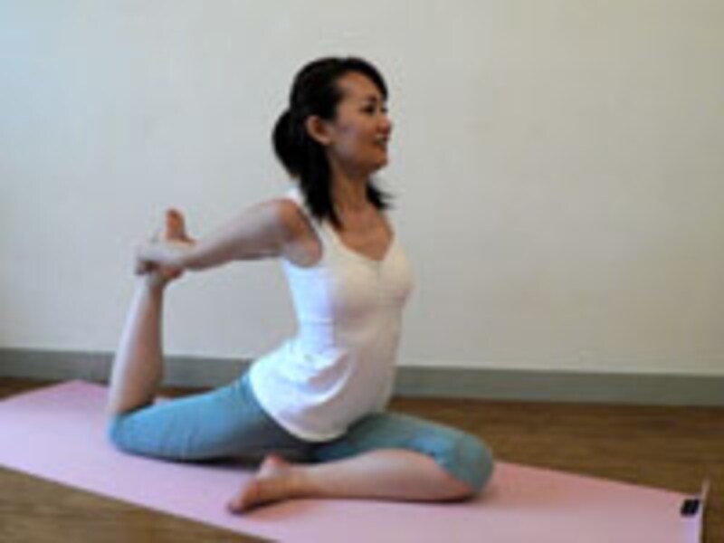 ドレッシーな露出の高いファッション時にはバストと背中の美しさが要!女性らしさはもちろん背中の疲れもスッキリします。【ハトのポーズ】(姫アレンジ編)