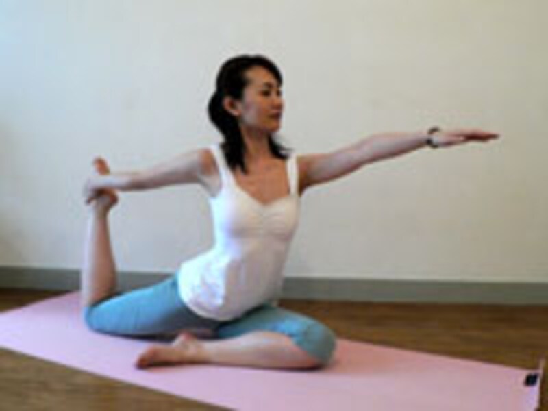 この姿勢で5呼吸をゆっくり繰り返す。