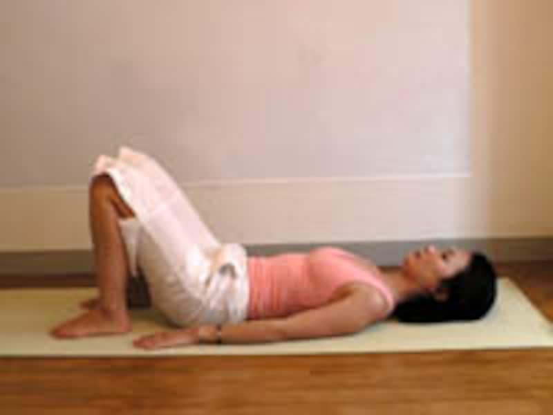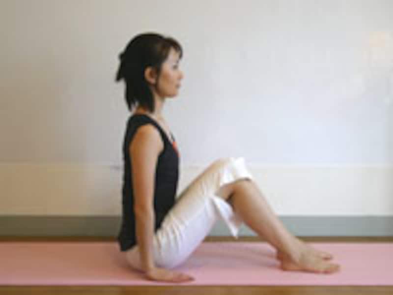 おへそと背中を引き寄せ、腹部をペタンコに保ち、5呼吸する。