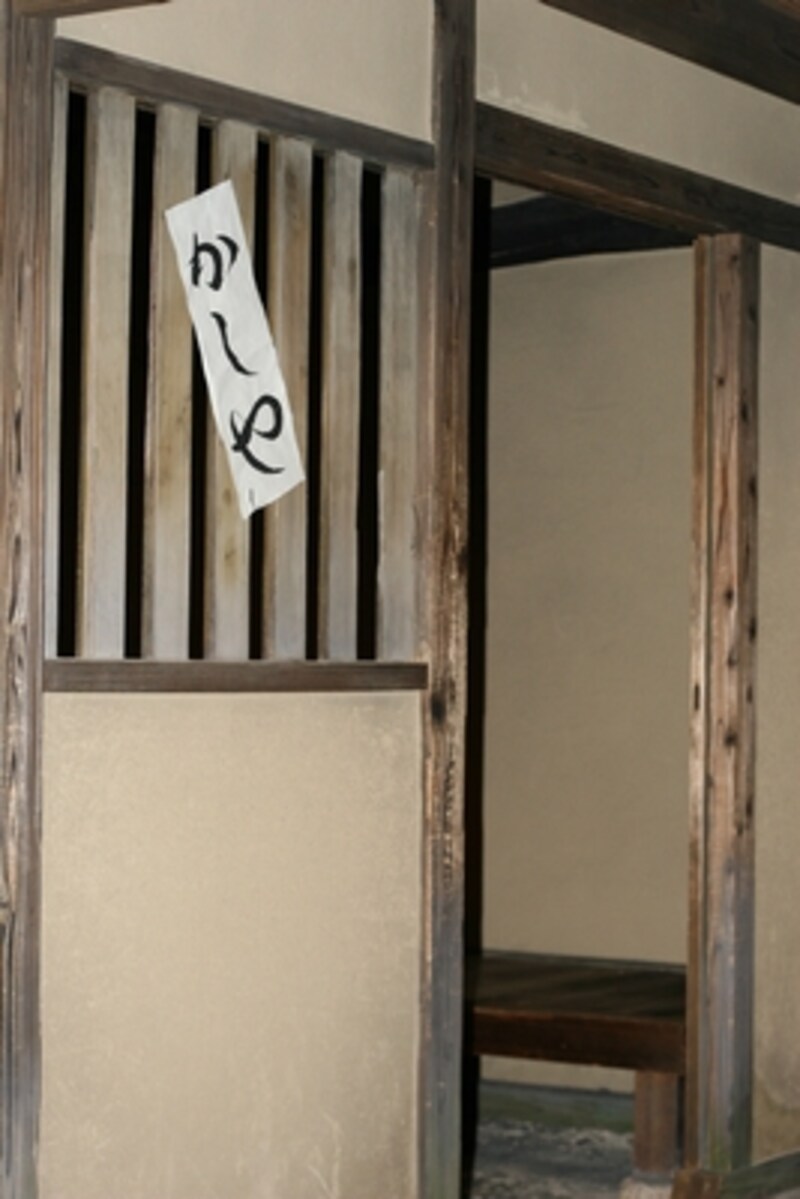 | 長屋には「かしや(貸家)」もありました。「住人が引越して現在は空家になっている」という設定だそうです。遊び心にあふれていますね。 |