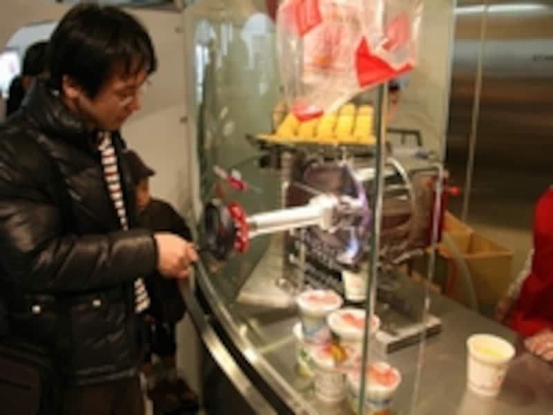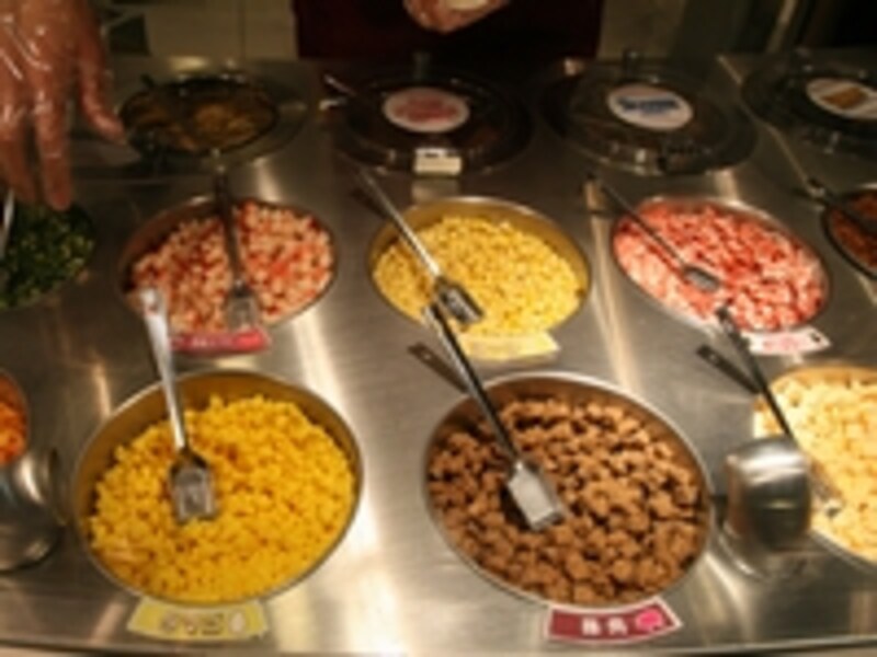 | アイスクリーム屋さんではよく見かける光景ですが、実はカップヌードルの具材選びです。 |