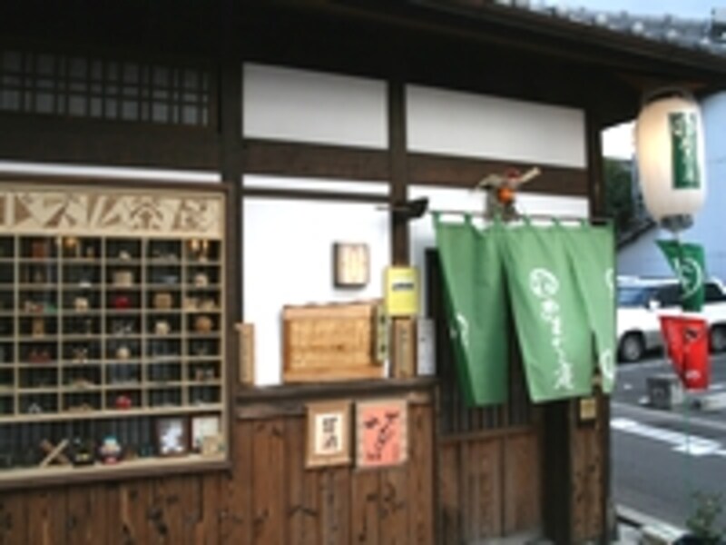 | 「門前茶屋おもろ庵」の入口で左に展示されているのが「パズル茶屋」です。見たこともない珍しいパズルの数々には思わず目を奪われます。 |