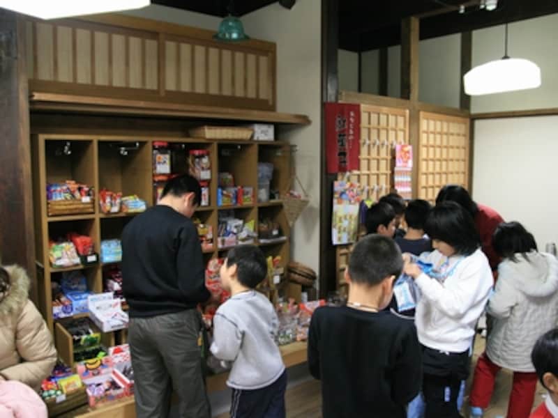 | 「おも路地」の駄菓子屋さんです。昔懐かしい駄菓子の数々が売られていて子供たちも大はしゃぎで遊んでいます。 |