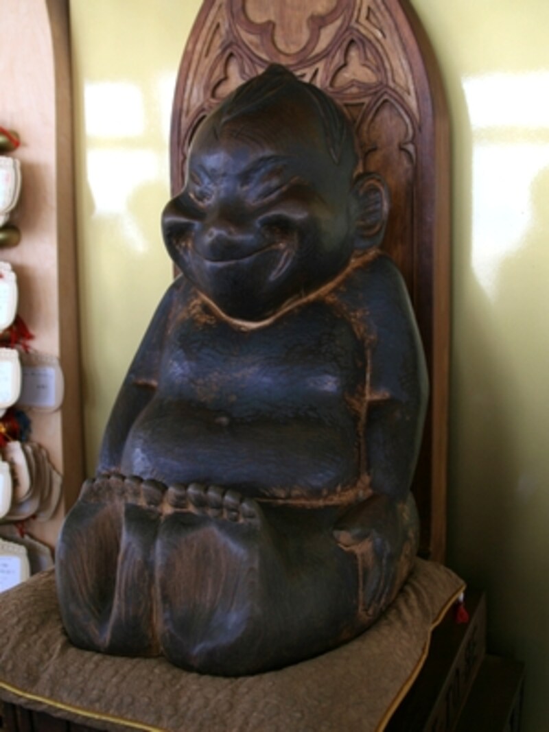 | 幸福の神様・ビリケンさまです。子供みたいな顔してはりますけど意外とメタボリックなビール腹。足をちょこんとそろえてはるのも可愛らしいですなぁ。 |