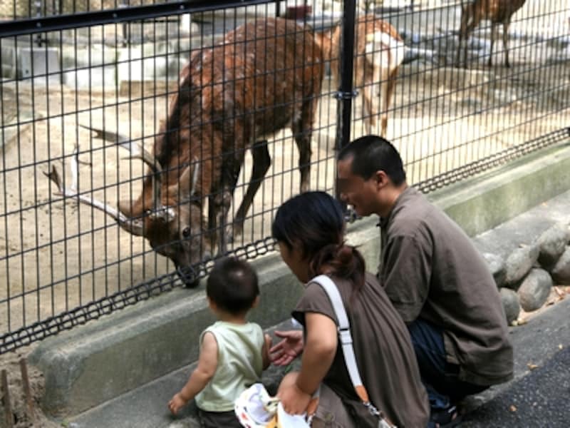 | 奈良公園に生息していることでもご存知のホンシュウシカ(本州鹿)です。売店では「鹿せんべい」を売っていて、檻の外からエサを与えることができます。鹿せんべいを見つけると目の色を変えて寄って来るので、お手軽に鹿と触れ合えるのでオススメです。 |