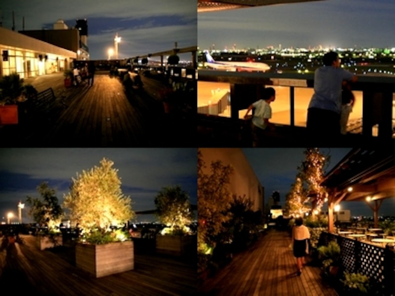 | ラ・ソーラは伊丹スカイパークに比べれば観光客は少なく穴場スポットです。滑走路は遠いので離着陸する飛行機の眺めは劣りますが、夜景を楽しむには絶好のビュースポット。昼と夜の大阪国際空港を見比べて楽しんでください。 |