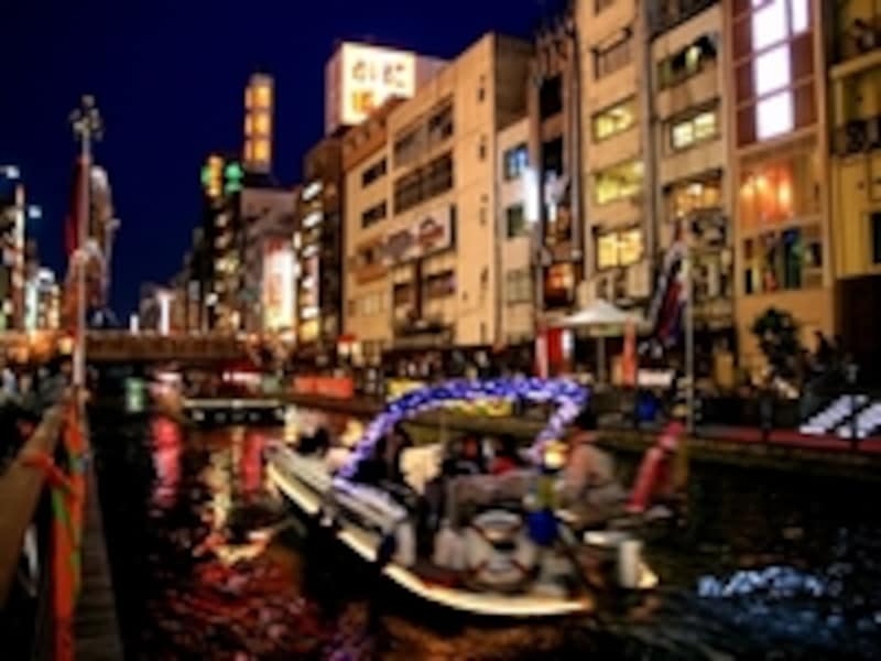 | 道頓堀川を行く水上クルーズ。ネオン輝く道頓堀をクルージングする街遊び。テーマパーク・シティの大阪ミナミを象徴する観光レジャーです。 |