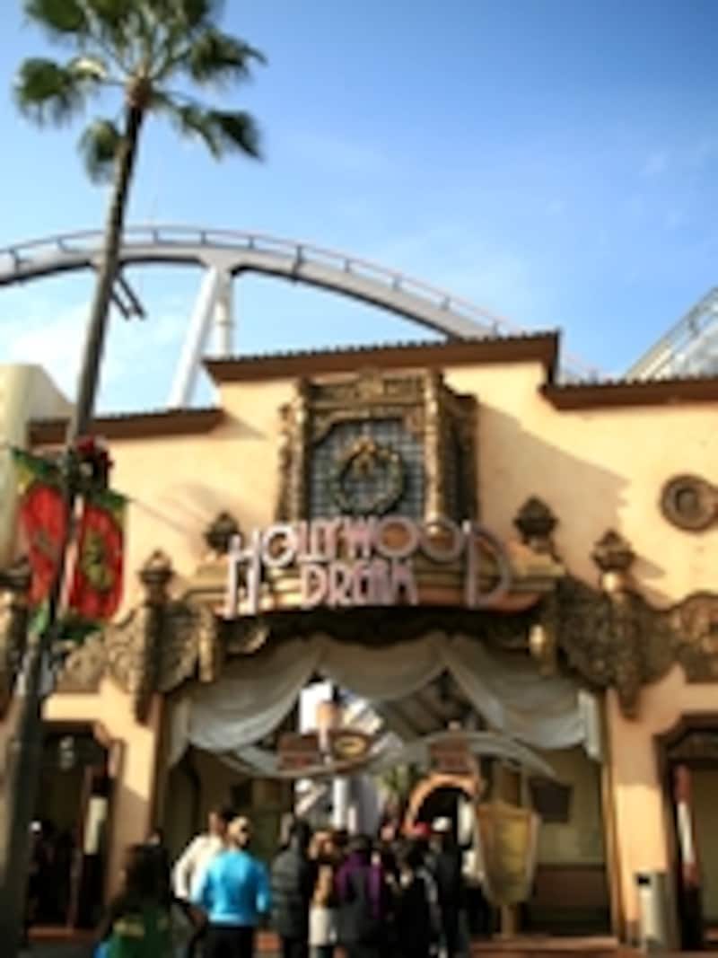 しかし、なにより驚いたのが耳横で流されるとはいえ、音楽が聞こえるほどジェットコースターの動きが滑らかで静かであったこと。じつはこれこそがハリウッド・ドリーム・ザ・ライドの最大のポイントで、すっと走り出して、すっと上昇して、すっと滑り降りていきます。非常に安定感のあるライドなのですが、基本はジェットコースターですのでスリルも、もちろんあります。とくに最初の急降下ではガイドは絶叫しました。