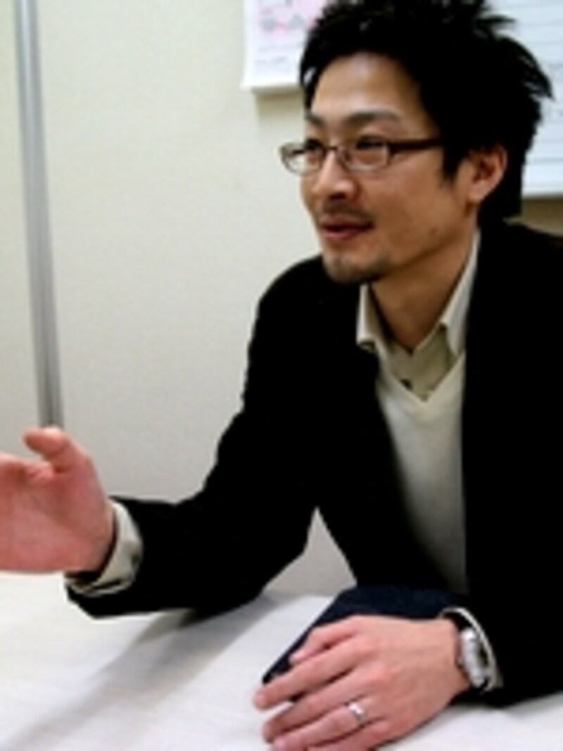 | インタビューにお答えくださった福岡さん。たこ焼きようかん開発にも携わったとか。なにわ商人といえば「コテコテ」なイメージがありますが、180度違うスマートかつ知的な話し振りが印象でした。 |