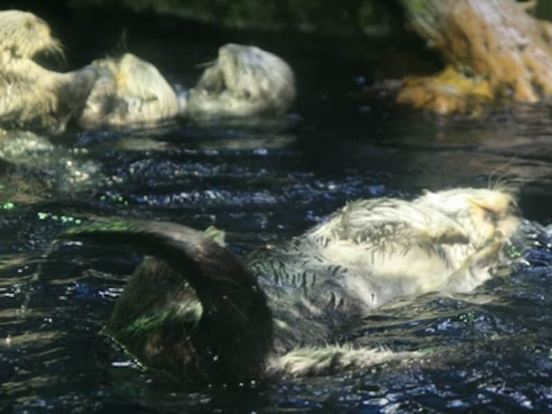 | エサが美味しかったのか、グルグルグルグルと水中で回転するラッコ。かわいい…。 |